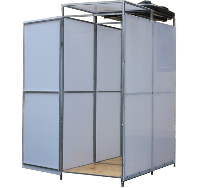 Стенки и дверь покрыты качественным сотовым поликарбонатом, который делает душевую кабину светлой внутри и надёжно скрывает Вас от посторонних глаз.